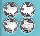 TEXAS REVOLUTION SERIES This is a .... 4 COIN SET of 1 TROY oz. .9999 pure SILVER Rounds,... From "2020 thru 2023" Lone Star TEXAS design, .... These 1 oz . SILVER coins are 39mm in size, see the scans, the actual coins look better,..... Bright white uncirculated pieces.... .These 4 coins have been made with proof like disks and they have Beautiful Cameo effects..... ..BEST PRICE PER COIN..... .... From a smoke free environment....They will be shipped in NEW CLEAR ACRYLIC CAPSULES, then wrapped and padded in a solid box for protection, along with full tracking and insurance...