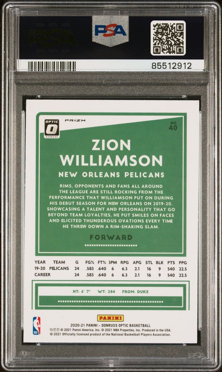 2020-21 Donruss Optic Zion Williamson Dragon Choice Prizm #40 Pelicans. Condition is Ungraded. Shipped with USPS Ground Advantage.