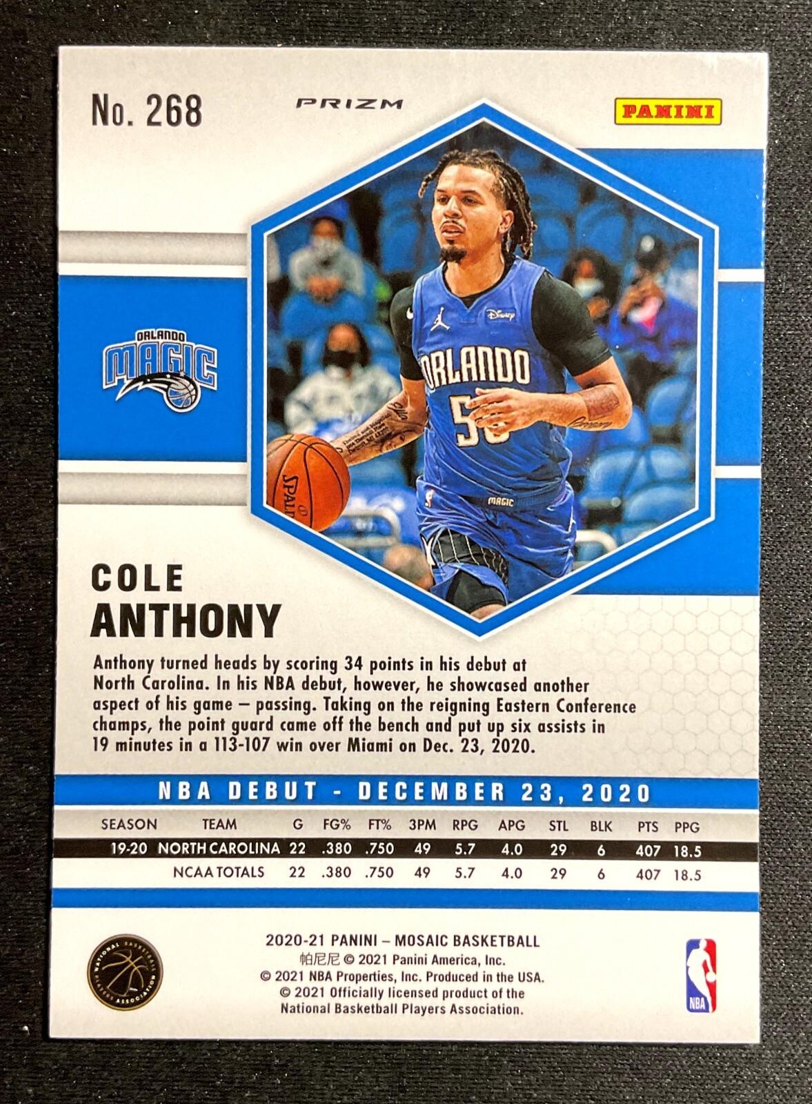 2020-21 Mosaic Cole Anthony RC NBA Debut GREEN Mosaic Prizm #268 Orlando Magic Check out our store for more great deals! Thanks