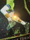 The product is a large blue photo of Anthony Edwards, a rookie player from the Minnesota Timberwolves team. The photo measures 16x22.5 and is from the 2020-21 Panini Select collection. It is a Premier Level photo, which means it is of high quality and features Edwards in action. This product is likely to appeal to fans of the Minnesota Timberwolves or collectors of basketball memorabilia. This photo measures 16x22.5 and is printed on thick stock. This is a copy of the card and printed on poster type board to be framed on a wall.