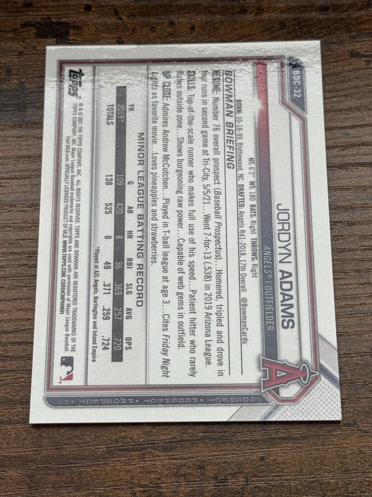Elevate your baseball card collection with the 2021 Bowman Chrome Draft Sapphire Edition Yellow Parallel of Jordyn Adams, card number BDC-32. This exclusive card, produced by Topps, features the promising talent from the Los Angeles Angels and is a must-have for fans and collectors alike. The card boasts an eye-catching yellow hue that sets it apart from the standard releases, adding a distinct flair to this collectible. With a limited print run, each card is serial numbered, ensuring its uniqueness and collectibility. This particular card, from the 2021 season, is an original piece that has not been autographed. It comes as a single parallel, adding a special touch of rarity to your collection. Don't miss the chance to own a piece of baseball history with this Jordyn Adams rookie card.