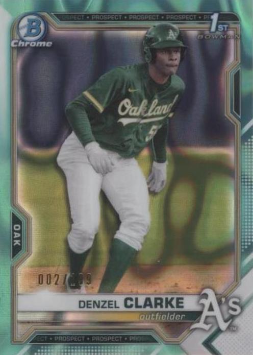 This card is a must-have for any collector! The Aqua Lava Refractor pops with vibrant colors, and the /199 rarity makes it a standout. Denzel Clarke’s 1st Bowman Chrome rookie looks sharp—perfect for PC or investment. Super clean design and great centering. Love it!