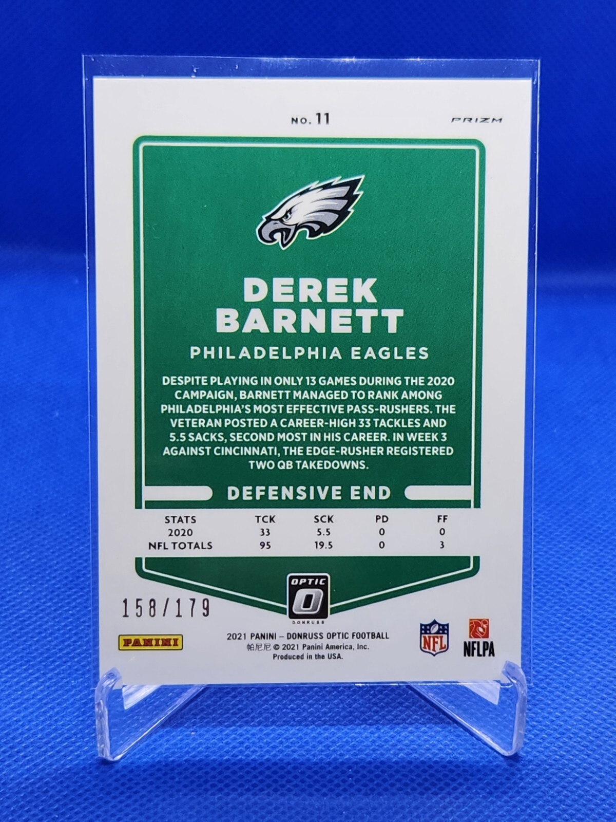 2021 Donruss Optic Blue #11 Derek Barnett Eagles 158/179