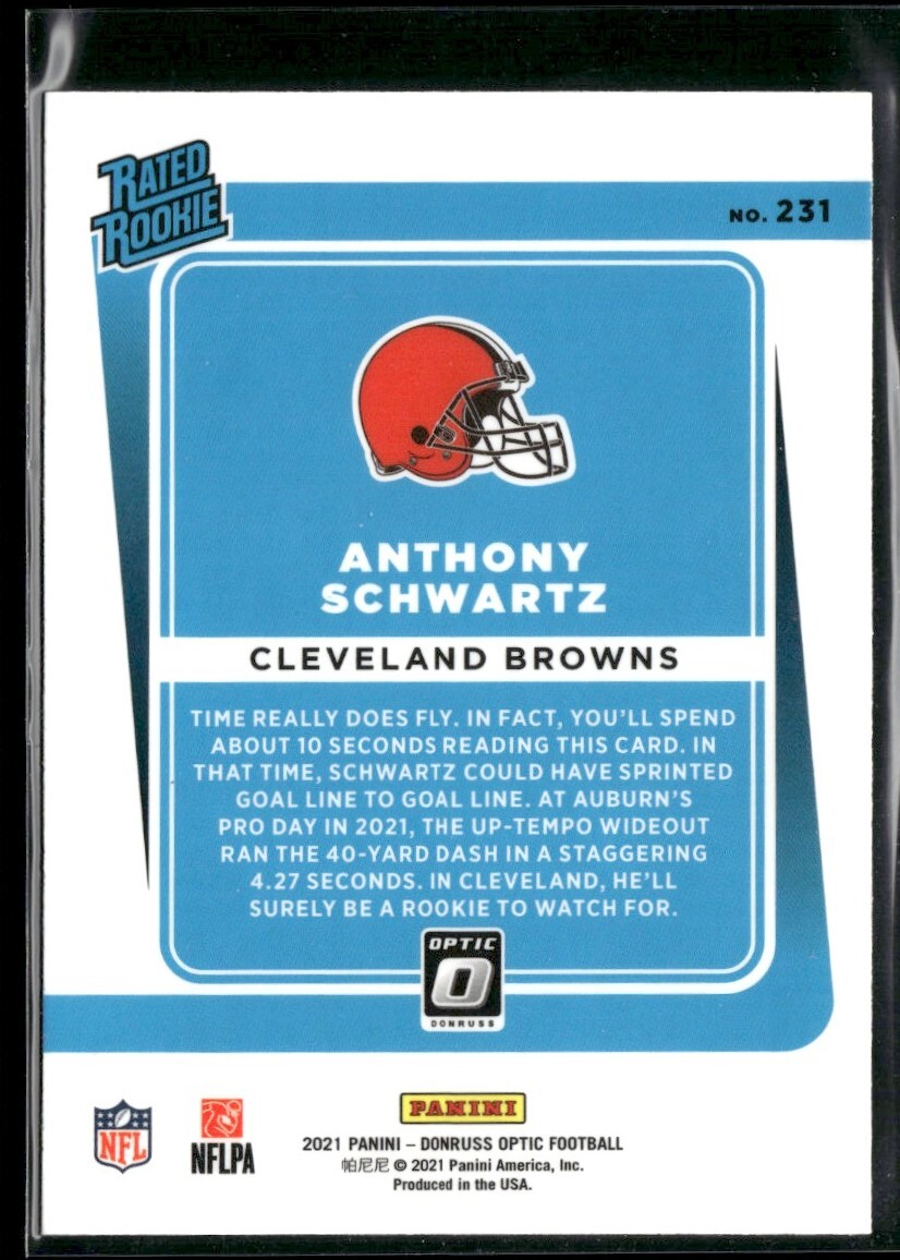 About Me Other Listings Feedback Add to Favorites Contact Me eBay Store JEm_Mint_Trading 2021 Donruss Optic Rated Rookies Anthony Schwartz Rookie Cleveland Browns #231 No stock photo / These are real scans or pictures Details Description: Anthony Schwartz Category: Football Year: 2021 Product: Donruss Optic Rated Rookies Team: Cleveland Browns Card Number: 231 Rookie: Yes Dimensions: 3½" x 2½" SKU: FT A0003 R04 G (15) Listing By Kronocard trading cards software v2.8.1.2
