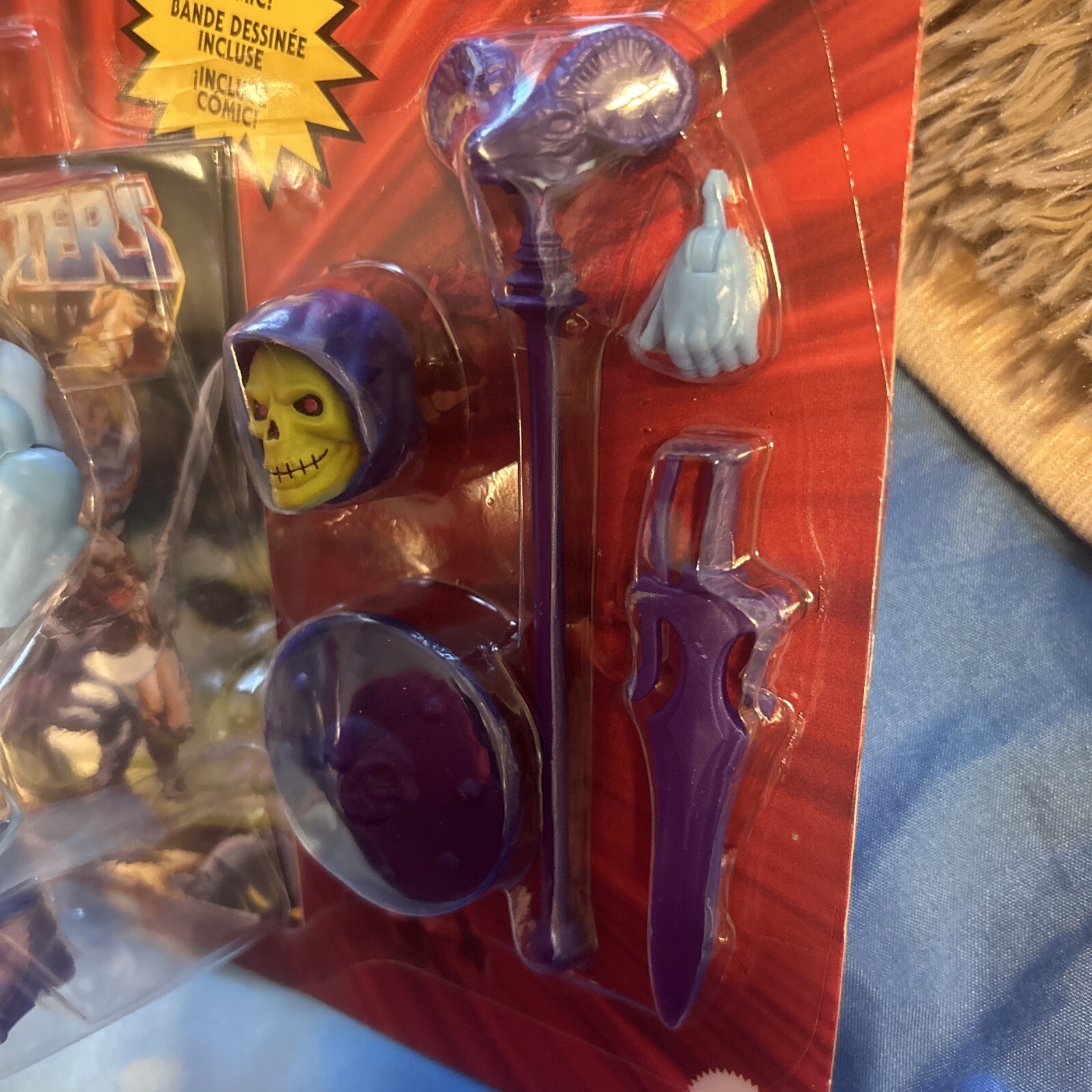 Get your hands on the 2021 Master of the Universe Battle Pack featuring the iconic character, Skeletor! This action figure is perfect for all occasions and comes in its original, unopened packaging. The colorful toy is made of plastic with a 1:12 scale and stands at a height of 5 inches. The set also includes a mixed lot of items and features custom clothes, making it a unique addition to any collection. This original, licensed reproduction is a must-have for fans of the Masters of the Universe franchise. Don't miss out on the chance to own this amazing action figure! It’s brand new. The package will have a little bit bent on the corner. It’s never been open. I took some pictures to approve it’s not open. Comes from a smoke and pet free home.