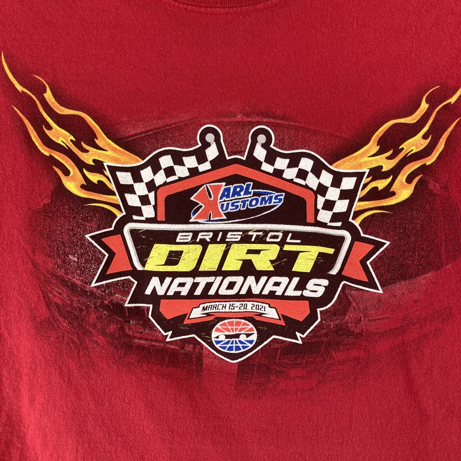 Absolutely love this shirt! The red color is vibrant, and the cotton is super soft. Fits true to size—just like my other mediums. The NASCAR Bristol Dirt Nationals design is sharp and holds up well after washing. Came a little wrinkled, but a quick iron fixed it. Clean, fresh, and ready to wear. Great for race day or casual outings. Seller was helpful and responsive—highly recommend!