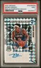 This 2021 Panini Mosaic Rookie Autographs trading card features Moses Moody of the Golden State Warriors, signed by the player himself. The card is graded PSA 9 and comes with autograph authentication from Panini Authentic. It is a must-have for any fan or collector of NBA memorabilia.The card is part of the 2021 Panini Mosaic set and features a stunning design, with the player's autograph prominently displayed. The card is perfect for those who appreciate rookie cards and want to add to their collection. Don't miss out on the chance to own this piece of sports history. Photos from PSA