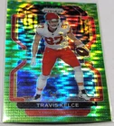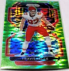 This 2021 Panini Prizm trading card features the talented Travis Kelce from the Kansas City Chiefs. The card is made of high-quality card stock with a thickness of 35 Pt. It is part of the Green Pulsar parallel/variety set and has the card number 189. The card is in mint condition, ready to be added to your collection. The card is from the National Football League (NFL) and celebrates the Super Bowl event/tournament. It is a standard size trading card manufactured in the United States by Panini. The card is written in English and is perfect for any football fan. Get your hands on this unique collectible today!