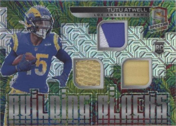 Season:2021Series:Panini SpectraParallel/Variety:Meta PrizmTeam:Los Angeles RamsManufacturer:PaniniLeague:National Football League (NFL)Card Number:BB-TASet:2021 Panini Spectrabrand:PaniniInsert Set:Building BlocksFeatures:Rookie, Insert, Memorabilia, Serial Numbered, Parallel/VarietySport:FootballPrint Run:25Player/Athlete:Tutu Atwell