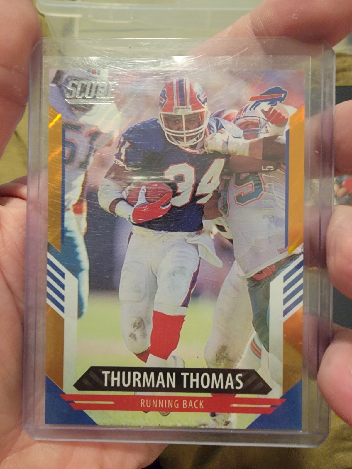 Sport:FootballFeatures:Parallel/Variety, Serial Numbered, InsertSet:2021 ScoreParallel/Variety:Gold PrizmLeague:National Football League (NFL)Team:Green Bay Packers, Buffalo Bills, Oklahoma State CowboysPlayer/Athlete:Thurman Thomas, Brett FavreSeason:2021Type:Sports Trading Card