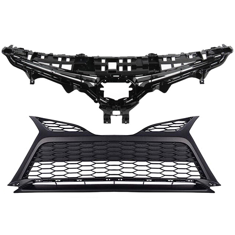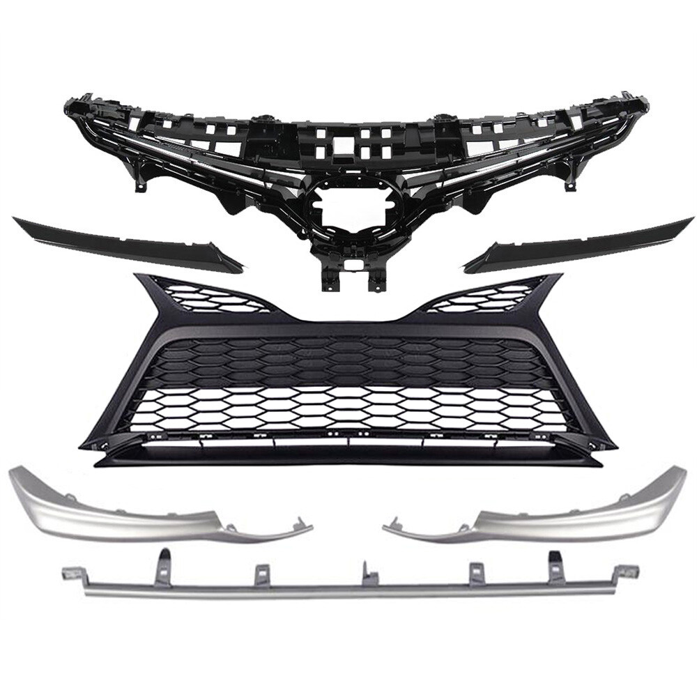 Fits 2021-2023 Toyota Camry SE Front Grille Black Trim Fog Light Bezel Set 9pcs Note: You need to replace the vehicle logo by yourself if it isn't suitable in some models. Specification: Color: Gloss Black + Silver Item-Offered: Front Upper Lower Grille Bumper Lower Molding Fog Position: Front Upper Lower Material: ABS Plastic/ Gloss Black + Silver Honeycomb Mesh /Polycarbonate Lens, Made from high grade OE comparable materials to withstand rough road wear and the test of time. Features: 100% brand new in factory original package. Made from high grade OE comparable materials to withstand rough road wear and the test of time. DOT/SAE approved for street legal. An excellent replacement / accessory for your vehicle, No Modification Needed. Light weight design. Fitment: 2021-2023 Toyota Camry SE Package included: Front Upper Grille Headlight Trim Fog Lights Bracket Set 1set(9pcs) Installation: Direct Replacement. Perfect fitment . No modification required. Product does not come with installation instructions, please refer to a shop/factory manual for installation.
