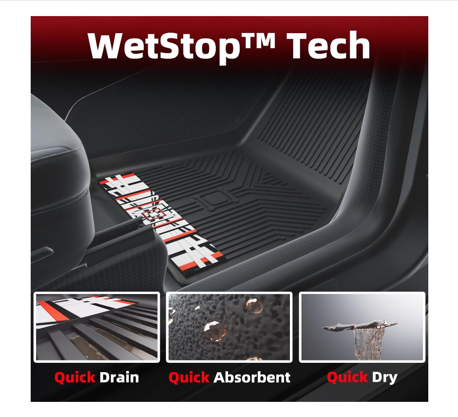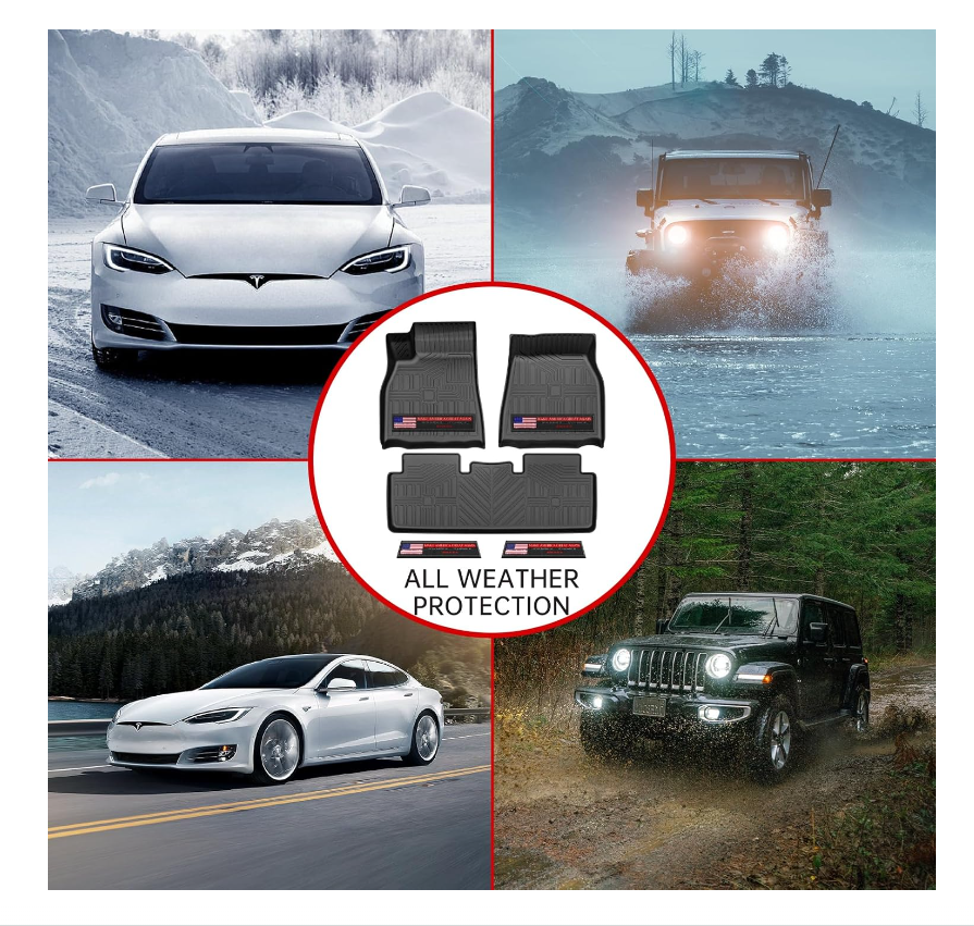 3D-Scan Perfect Fitment -- Torcia mats are custom made for 2021 2022 2023 2024 Tesla Model S Plaid, 1st & 2nd Row Floor Liners. WetStop Tech Protection -- Trocia Mats come with Velcro attached WetStop patch that can rapidly absorb and lock in the rain, snow, mud & spills, also easily be removed, wrung out, and cleaned. 100% Non-Toixc & 100% Odorless -- Torcia mats are made from Natural thermoplastic rubber,which is safe, odorless, and 100% recyclable material,friendly for your kids, pets and our planet. Ultra-Durability -- Torcia mats are extreme resistant to wear and tear,the sturdy design & material ensures they will withstand years of abuse, keeping your car's interior in pristine condition. Anti-Slip Spikes -- Torcia mats are full of underside spikes that grip the floor,good to be placed on the carpeted floor or directly on factory floor,even won't slip on the work truck floor without taps.