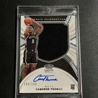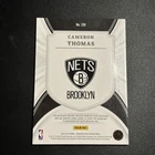 This 2021-22 Crown Royale sports trading card features Brooklyn Nets player Cameron Thomas, with an autographed hard-signed format. The card is part of the Rookie, Insert, Memorabilia features and has a card number of 199. It is signed by the player himself and authenticated by Panini Authentic. The card is from the National Basketball Association (NBA) League and manufactured by Panini. It is a great addition to any basketball trading card collection.
