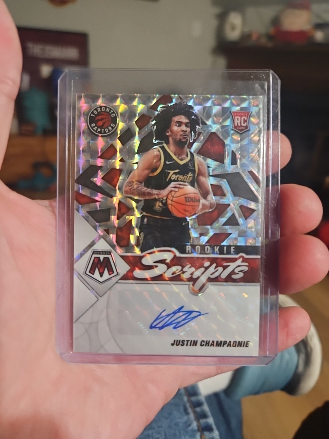 Card Number: RS-JCH Player/Athlete: Justin Champagnie Features: Rookie, Insert Sport: Basketball Autographed: Yes Series: Panini Mosaic Set: 2021-22 Panini Mosaic League: National Basketball Association (NBA) Manufacturer: Panini Parallel/Variety: [Base] brand: Panini Insert Set: Rookie Scripts Season: 2021-22 Team: Toronto Raptors