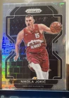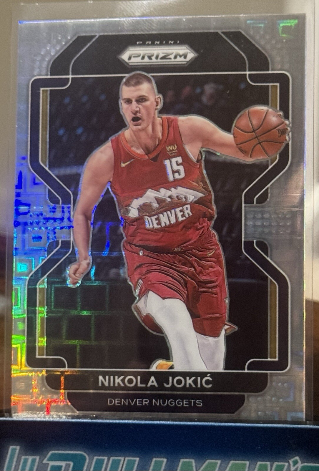 This is a 2021-22 Panini Prizm sports trading card featuring Nikola Jokić of the Denver Nuggets in the National Basketball Association (NBA). The card is a Premium Box Pandora Prizm parallel variety, with a limited print run of 139 out of 150. It is part of the 75th Anniversary set and is serial numbered for authenticity. This card is a special edition item for collectors, celebrating Jokić's MVP performance during the 2020-21 season.