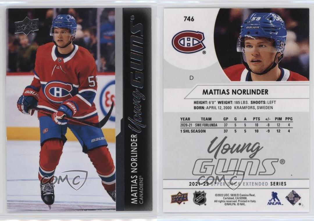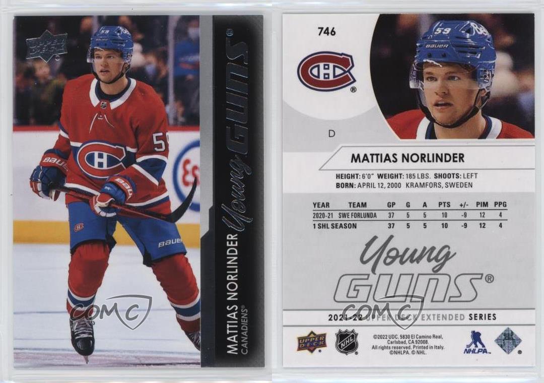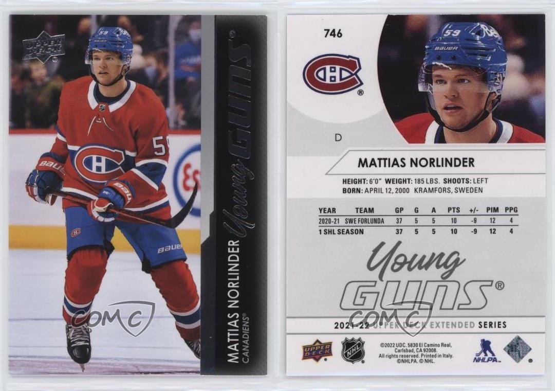 2021-22 Upper Deck Extended Series - [Base] #746 Young Guns - Mattias Norlinder - RC (Rookie Card) - Ice Hockey Card - Featuring the Montreal Canadiens - Featuring Mattias Norlinder Search for more: 2021-22 Upper Deck Extended Series Search for more: 2021-22 Upper Deck Extended Series - [Base] View all of our Listings Auctions Buy It Now About Us Located in the beautiful Pacific Northwest, COMC (Check Out My Cards) is the world's largest consignment service for trading card singles. More than 10,000 people have used our consignment service to list over 50 million trading cards. Find out how we can help you consign your items on eBay by contacting us through eBay messaging. COMC -- "The Safe & Easy Way to Buy & Sell" Representative Image - Select Specific Item above to see image of actual item Representative Image - Select Specific Item above to see image of actual item Raw Condition for Modern Cards Unless otherwise noted, raw modern cards are listed in Near Mint-Mint condition or better. A NM-MT card appears to be Mint at first glance, but upon closer inspection, may exhibit some of the following: minor print defects (e.g. roller marks, print line, dimple), minor scratches, slight edge wear, and slight corner wear. Centering is clearly visible in the images provided and does not factor into our condition assessment. Raw Condition for Vintage Cards Unless otherwise noted, raw vintage cards are listed in Excellent condition or better. An EX card may exhibit some of the following: minor rounding of corners, surface wear, print defects, light scratches, and slight edge wear/chipping. Centering is clearly visible in the images provided and does not factor into our condition assessment. Domestic Shipping Combined shipping for multiple items is available. To receive combined shipping, please ensure all desired items are in your eBay shopping cart before proceeding to checkout. eBay limits orders to 40 items per order. We automatically combine multiple orders placed on the same day. If you place multiple orders on the same day, please contact us to request a refund of applicable shipping costs. Signature confirmation may be required on invoices over $400. All cards are protected and shipped securely. International Shipping COMC offers eBay's International Shipping (EIS) for international orders under $2,500* (see country exceptions below). All duties and import fees are paid at checkout; in the rare event that there are additional import fees upon delivery, these are borne by the buyer. EIS packages route through a shipping hub in Erlanger, KY before shipping to their final destination. Please note that EIS does not allow for combined shipments. The shipping rates are determined by eBay and cannot be adjusted. *Maximum sale price exceptions: Colombia, Kuwait ($2,000); Taiwan ($1,539); Chile, Costa Rica, Guatemala, Honduras, Trinidad and Tobago ($1,000); Antigua and Barbuda, Aruba, Belize, Dominica, Grenada, Philippines, Saint Kitts and Nevis, Saint Lucia, Montserrat, Turks and Caicos Islands ($500); Dominican Republic, El Salvador ($200). Please request a shipping quote through eBay messaging for orders that exceed the maximum sale price supported by eBay's International Shipping. You will be responsible for all duties and import fees for international orders shipped outside the EIS. All cards are protected and shipped securely. Payment COMC does not accept offers on our cards through our eBay storefront. COMC utilizes eBay’s managed payments system. If you are experiencing difficulties making a payment, please contact eBay for assistance. Return Policy Returns are only accepted on the rare occasion the item is not as described. If you are making a return, please initiate the return process through eBay so a mailing label can be provided for you. Prior to listing, our expert team carefully assessed this item to represent it accurately. Please review the description and high-definition images prior to purchasing to ensure this item meets your satisfaction. We welcome you to contact us if you have further questions about this item. Trust and Integrity COMC carefully assesses each item consigned to us to prevent fraudulent items from entering the marketplace. If you believe an item offered on COMC may be fraudulent, please contact us with details so we can investigate the issue. Items we determine are outside our supported items policy may be removed. Last Modified: 6/9/2025 4:00:21 PM PDT