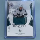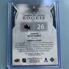 Get your hands on this 2021-22 Upper Deck Ultimate Collection Ultimate Rookies Jersey #142 trading card featuring Jasper Weatherby. This card is a must-have for any sports card collector and is a great addition to your collection. Don't miss out on this opportunity to own a piece of sports history.