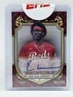 Sealed Topps redemption card. This 2022 Bowman's Best sports trading card features Elly De La Cruz, a rookie player for the Cincinnati Reds in Major League Baseball (MLB). The card is part of the Prospective Royalty Autographs insert set and is serial numbered out of 250 copies. It is a great addition to any baseball fan's collection, especially those who follow the career of Elly De La Cruz.