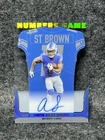 This 2022 Contenders Amon-Ra St Brown Numbers Game Acetate SP Auto #NG-AST trading card is a must-have for any Detroit Lions fan. Featuring an autograph from the talented wide receiver, this card is a rare find for any collector. The card is also a short print, making it even more valuable to those who are looking to complete their collection. The card is made from acetate, giving it a unique look that is sure to catch the eye of any collector. It is also a sports trading card, making it a great addition to any collection that is focused on sports memorabilia. With the season and player information clearly stated on the card, it is a great investment for any fan of the game. Cards are packaged properly. Sent with secure envelope for guaranteed delivery. What you see is what you get.