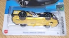 The product is a 1:64 scale diecast model car of a 1976 Chevrolet Greenwood Corvette, part of the Hot Wheels HW Contoured series. It features an unopened box and is manufactured in Malaysia. The car is not autographed and is not customized. The brand is Hot Wheels and the model number is HCV23. The card is damaged.