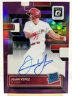 For avid collectors of baseball trading cards, here's your chance to get your hands on a rare Juan Yepez RatedRookie Auto card from the 2022 Panini Donruss Optic set. This card features a stunning purple prizm parallel/variety and is numbered out of 100. It's a must-have for any serious collector looking to add to their collection. This sports trading card is manufactured by Donruss and is part of the 2022 season set. It's a great addition to any collection and is sure to impress. So don't miss out on this opportunity to own a piece of baseball history.