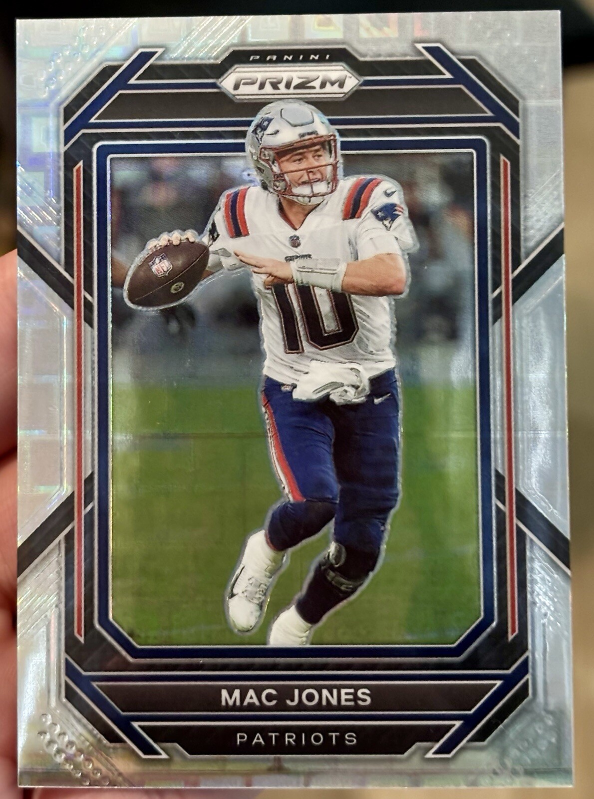 Elevate your collection with the 2022 Panini Prizm Pandora Prizm card featuring the talented Mac Jones. As part of the coveted 2022 Panini Prizm - Pandora Prizm set, this card is numbered #197 and showcases Jones in his New England Patriots colors. With a limited release of only 400 pieces, this serial-numbered gem is a must-have for NFL enthusiasts and collectors alike. Crafted by Panini America, Inc., the card reflects the excellence of the National Football League's 2022 season. The Pandora Prizm variety adds a unique parallel brilliance to the card's appearance, making it stand out in any display. An original piece, this sports trading card captures the spirit of the game and is a tribute to one of football's rising stars.