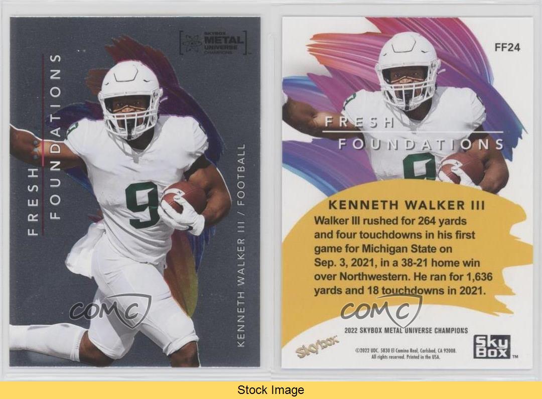 2022 Skybox Metal Universe Champions - Fresh Foundation #FF24 Kenneth Walker III - Rookie - MultiSport Card - Featuring Kenneth Walker III Search for more: 2022 Skybox Metal Universe Champions Search for more: 2022 Skybox Metal Universe Champions - Fresh Foundation View all of our Listings Auctions Buy It Now About Us Located in the beautiful Pacific Northwest, COMC (Check Out My Cards) is the world's largest consignment service for trading card singles. More than 10,000 people have used our consignment service to list over 50 million trading cards. Find out how we can help you consign your items on eBay by contacting us through eBay messaging. COMC -- "The Safe & Easy Way to Buy & Sell" Representative Image - Select Specific Item above to see image of actual item Representative Image - Select Specific Item above to see image of actual item Raw Condition for Modern Cards Unless otherwise noted, raw modern cards are listed in Near Mint-Mint condition or better. A NM-MT card appears to be Mint at first glance, but upon closer inspection, may exhibit some of the following: minor print defects (e.g. roller marks, print line, dimple), minor scratches, slight edge wear, and slight corner wear. Centering is clearly visible in the images provided and does not factor into our condition assessment. Raw Condition for Vintage Cards Unless otherwise noted, raw vintage cards are listed in Excellent condition or better. An EX card may exhibit some of the following: minor rounding of corners, surface wear, print defects, light scratches, and slight edge wear/chipping. Centering is clearly visible in the images provided and does not factor into our condition assessment. Domestic Shipping Combined shipping for multiple items is available. To receive combined shipping, please ensure all desired items are in your eBay shopping cart before proceeding to checkout. eBay limits orders to 40 items per order. We automatically combine multiple orders placed on the same day. If you place multiple orders on the same day, please contact us to request a refund of applicable shipping costs. Signature confirmation may be required on invoices over $400. All cards are protected and shipped securely. International Shipping COMC offers eBay's International Shipping (EIS) for international orders under $2,500* (see country exceptions below). All duties and import fees are paid at checkout; in the rare event that there are additional import fees upon delivery, these are borne by the buyer. EIS packages route through a shipping hub in Erlanger, KY before shipping to their final destination. Please note that EIS does not allow for combined shipments. The shipping rates are determined by eBay and cannot be adjusted. *Maximum sale price exceptions: Colombia, Kuwait ($2,000); Taiwan ($1,539); Chile, Costa Rica, Guatemala, Honduras, Trinidad and Tobago ($1,000); Antigua and Barbuda, Aruba, Belize, Dominica, Grenada, Philippines, Saint Kitts and Nevis, Saint Lucia, Montserrat, Turks and Caicos Islands ($500); Dominican Republic, El Salvador ($200). Please request a shipping quote through eBay messaging for orders that exceed the maximum sale price supported by eBay's International Shipping. You will be responsible for all duties and import fees for international orders shipped outside the EIS. All cards are protected and shipped securely. Payment COMC does not accept offers on our cards through our eBay storefront. COMC utilizes eBay’s managed payments system. If you are experiencing difficulties making a payment, please contact eBay for assistance. Return Policy Returns are only accepted on the rare occasion the item is not as described. If you are making a return, please initiate the return process through eBay so a mailing label can be provided for you. Prior to listing, our expert team carefully assessed this item to represent it accurately. Please review the description and high-definition images prior to purchasing to ensure this item meets your satisfaction. We welcome you to contact us if you have further questions about this item. Trust and Integrity COMC carefully assesses each item consigned to us to prevent fraudulent items from entering the marketplace. If you believe an item offered on COMC may be fraudulent, please contact us with details so we can investigate the issue. Items we determine are outside our supported items policy may be removed. Last Modified: 7/10/2025 10:46:03 PM PDT
