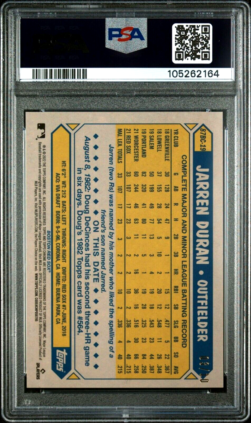 This card is an absolute gem! The Rose Gold Red Refractor pops beautifully, and the PSA 10 grade ensures pristine condition. Fast shipping from Seoul with tracking—super reliable seller. Perfect for serious collectors, especially Red Sox fans. The eBay Global Shipping Program makes international delivery smooth. Highly recommended for anyone looking to add a rare, high-grade Duran rookie to their collection!