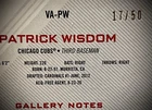 This is a 2022 Topps Gallery Veteran Autographs trading card featuring Patrick Wisdom of the Chicago Cubs. It is autographed, part of a set with a print run of 50, and is a parallel variety card in blue. The card is serial numbered 17/50 and in near mint or better condition. It is an insert card from the Veterans Autographs set manufactured by Topps for the 2022 baseball season.