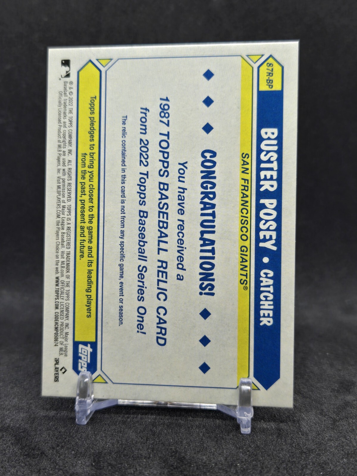 2022 Topps Series 1 1987 Game Used Relic #87R-BP Buster Posey Giants. Condition is Ungraded. Shipped with eBay Standard Envelope for Eligible Items up to $20.