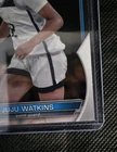 Capture the essence of a rising basketball star with the 2022-23 Bowman University Chrome JuJu Watkins #43 RC Rookie Card. This card features the dynamic JuJu Watkins, celebrated for her prowess on the court, and is a must-have for any collector or fan of the sport. Manufactured by Topps, this card is part of the esteemed 2022-23 Bowman University Chrome - [Base] set, showcasing the excellence of the NCAA and WNBA leagues. Crafted in the United States, the card is presented in standard size with a 20 Pt. thickness, ensuring durability and a classic feel. The card is an original piece, not autographed, and is offered in English. Watkins' rookie status makes this card a noteworthy acquisition, capturing the excitement of the NBA Finals and the promise of a player's early career.