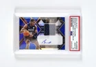 This 2022-23 Panini Select sports trading card features Bennedict Mathurin of the Indiana Pacers. The card is autographed, signed using a label or sticker, and is made of card stock with a thickness of 35 Pt. It is an original, not a licensed reprint, and is printed in a blue prizm parallel/variety with a print run of only 49. The card is serial numbered, short printed, and includes memorabilia, making it a great addition to any collection. It is a rookie card, and the autograph has been authenticated by Panini Authentic. This National Basketball Association (NBA) card is a must-have for any basketball fan and collector.