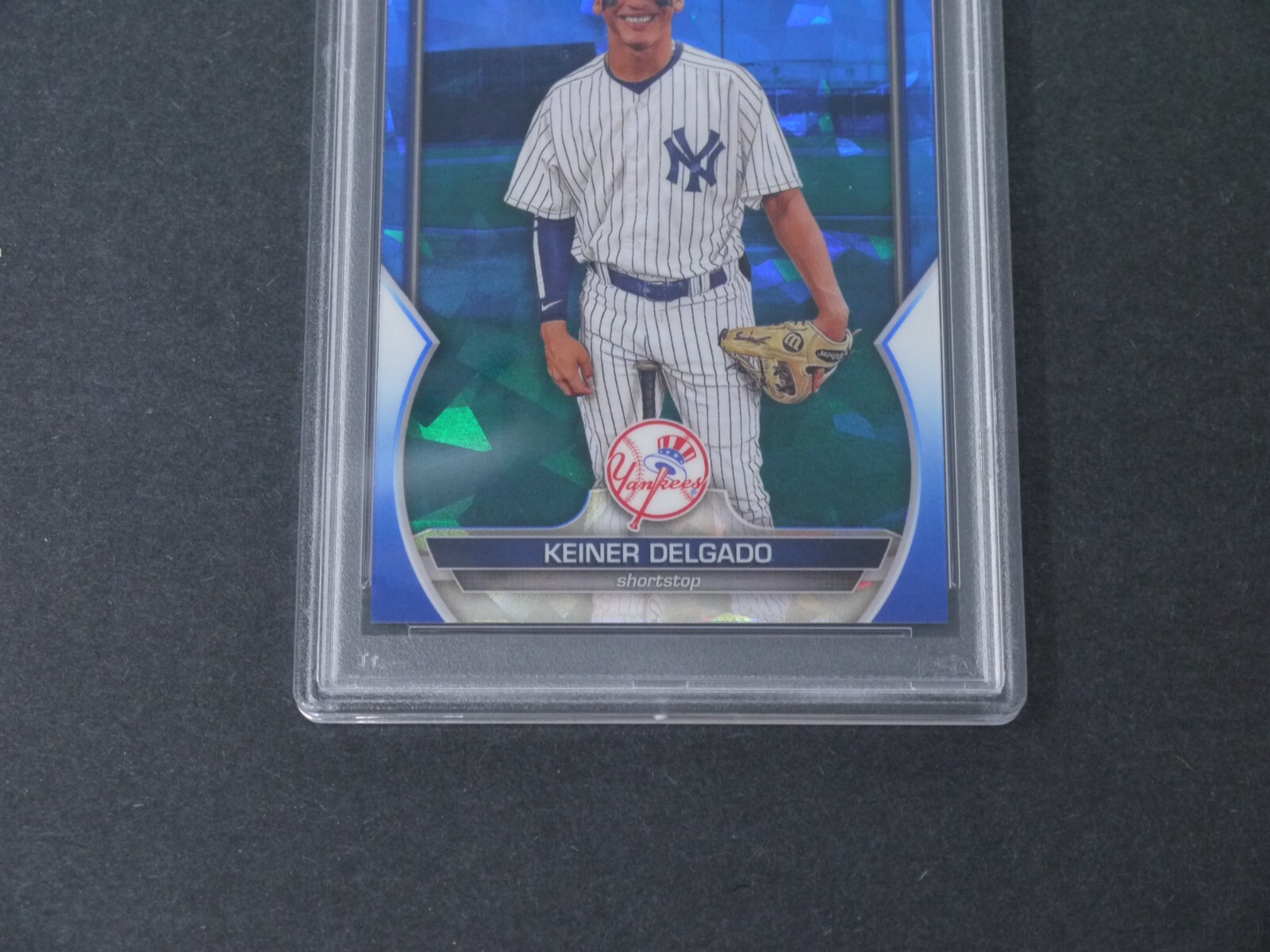 This 2023 Bowman Chrome sports trading card features Keiner Delgado, a promising rookie in the baseball world. The card number is BCP191 and it is part of the Shimmer parallel/variety set. Manufactured by Bowman, this GEM MT card is a must-have for any sports trading card collector. The card is from the 2023 season and is part of the 1st Chrome set. It boasts a beautiful design and showcases Delgado's talent as a player. This trading card is perfect for fans of baseball and sports trading card enthusiasts alike. Don't miss your chance to add this gem to your collection!