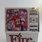 This 2023 Panini Chronicles Draft Picks card features Jaxon Smith-Njigba, a rookie player from the Ohio State Buckeyes team. The card is part of the Contenders College Ticket insert set and has a card number of 15. It is an original and licensed print sports trading card that is perfect for any football fan. The card is standard-sized and has no autograph. It is manufactured by Panini and belongs to the National Collegiate Athletic Association (NCAA) league. This card is a great addition to any sports trading card collection. Thank you for your interest, don't let it get away bid today!