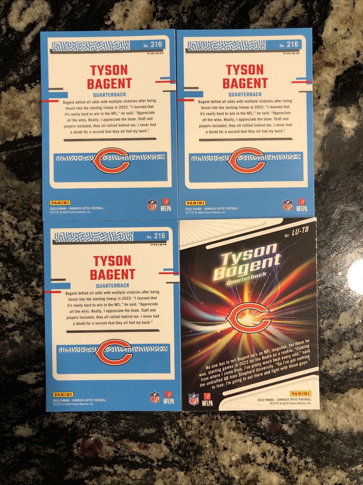 2023 Donruss Optic Bears Tyson Bagent Rated Rookie Card - Lot of 4 Must-Have Collectibles for Fans