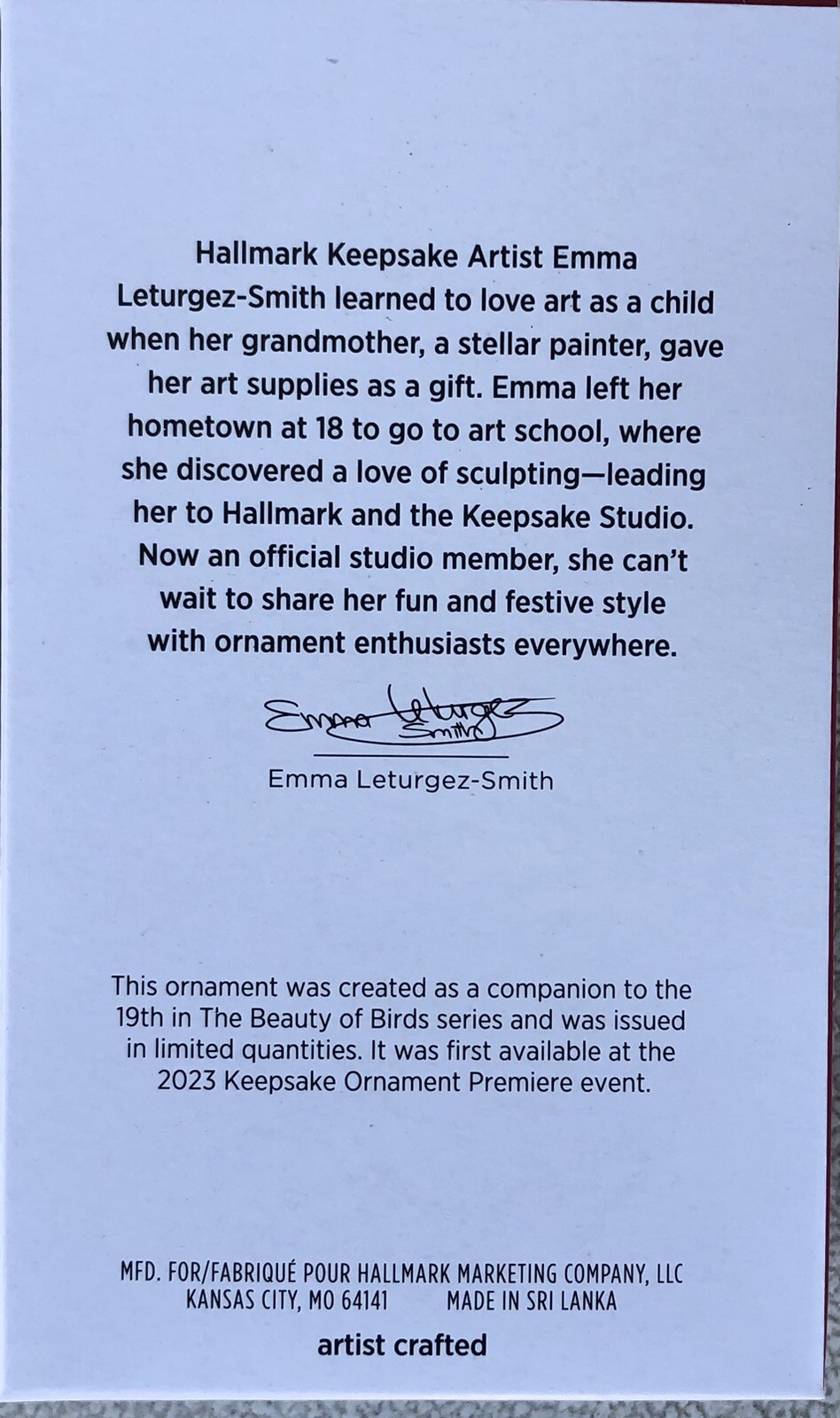 Hallmark 2023 Leucistic Steller’s Jay Limited Edition Keepsake Ornament New.