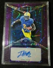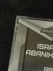 This 2023 Wild Card Alumination Football trading card features Israel Abanikanda, a rookie player from the Pitt Panthers, New York Jets, and San Francisco 49ers. The card is autographed with a label or sticker and comes in a purple laser parallel/variety. It is an original, limited edition, exclusive sports trading card that is encased and checklist. The card is serial numbered, hologram, short print, and comes with a collectors edition. It is an excellent addition to any collection and is a must-have for fans of the National Football League (NFL). Don't miss the chance to own this amazing card!