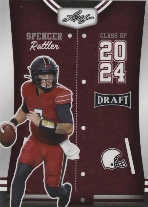 Elevate your collection with the 2023 Leaf Draft - Class of 2024 #80 Spencer Rattler rookie card. Celebrate the collegiate career of the promising quarterback with this base set collectible from Leaf, a trusted name in sports memorabilia. As a part of the 2023 season's release, this card captures the essence of Spencer Rattler's athletic journey in the National Collegiate Athletic Association (NCAA) football realm. For fans and collectors alike, this sports trading card is a tangible piece of the 2023 Leaf Draft's legacy. Its notable features include the iconic 'RC' designation for rookie card, ensuring its significance in any collection. Whether you're a supporter of Rattler's team or a connoisseur of football memorabilia, this card is a noteworthy acquisition for its representation of collegiate sports excellence.