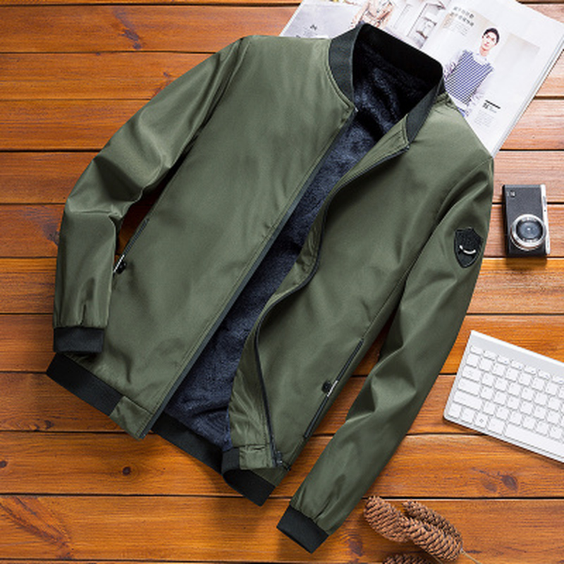 This bomber jacket is a must-have for fall! The fit is perfect—not too tight or loose—and the baseball collar adds a cool streetwear vibe. The material feels durable yet lightweight, ideal for layering. Great for casual outings or adding an edgy touch to any outfit. Love the sleek design and quality stitching. Definitely worth every penny!