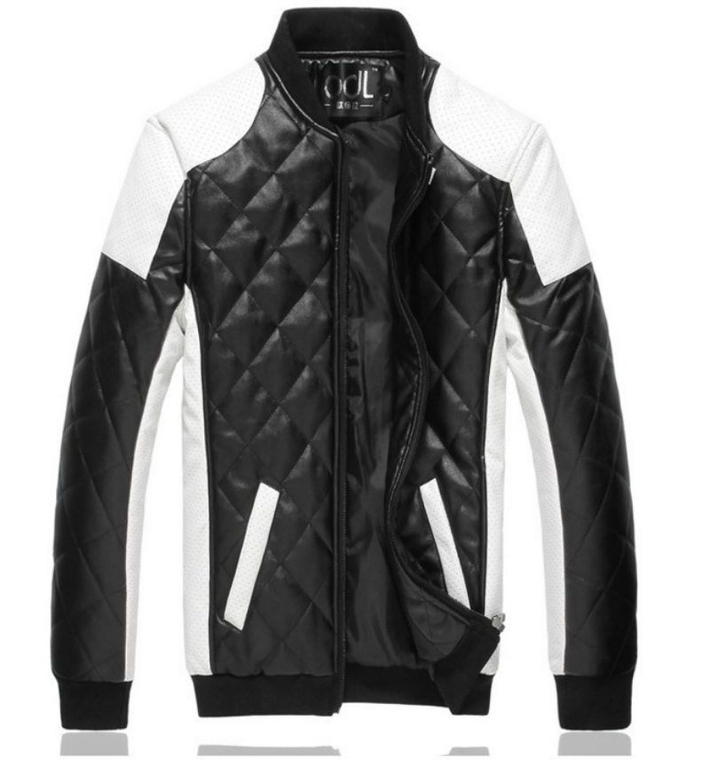 2023 Slim Fit PU Leather Jacket in White & Black with Lapel Zipper Design