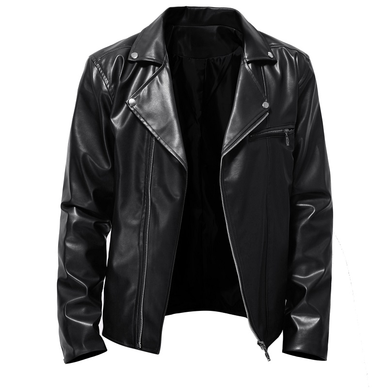 Men's Black Faux Leather Windproof Oversized Zip-Up Jacket Autumn Casual Fashion