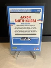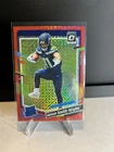 This 2023 Donruss Optic Jaxon Smith-Njigba Rated Rookie Red Mojo Prizm SSP RC is a must-have for any football fan and collector. The card features a stunning red mojo parallel/variety and is in excellent shape, near mint or better. The card is from the 2023-24 season and is part of the Donruss Optic set. It is a sports trading card, specifically a football card, and is manufactured by Donruss. The card is not autographed and is ungraded. Its features include being a rookie card and part of the red mojo prizm collection.