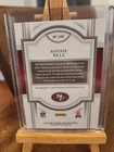 This is a 2023 Panini National Treasures trading card featuring Ronnie Bell of the San Francisco 49ers. It is an autographed card with a print run of 99, part of the Holo Silver parallel variety. The card is serial numbered as 149 and is classified as a rookie insert card. card is as pictured.