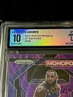 Up for sale is a 2023 Panini Prizm Monopoly All-Star Purple #PS9 card featuring none other than basketball superstar LeBron James. This card is a must-have for any collector or fan of the Los Angeles Lakers. The card is an original and has been graded a perfect 10. This card is part of the 2023 Panini Prizm set and is a Prizm variety, adding a unique parallel feature to your collection. The card showcases LeBron in his Lakers uniform and is a great addition to any basketball memorabilia collection. Don't miss out on the opportunity to own this rare card.