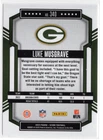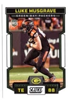 This 2023 Panini Score trading card features Luke Musgrave, a rookie player for the Green Bay Packers in the National Football League (NFL). The card is made of high-quality card stock with a thickness of 20 Pt. and has standard size dimensions. It also showcases the player's card number 340 and is part of the set released by Panini. The card is a must-have for avid sports trading card collectors, especially those who are fans of the Green Bay Packers and Luke Musgrave. It was manufactured in the United States and features English language text. The card's notable features include its association with the 2023 Panini set and the Super Bowl tournament.