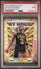 This 2023-24 Panini Donruss Optic My House trading card features Keyonte George of the Utah Jazz. Graded PSA 9, this original card is a short print with a hologram and parallel/variety design. It is a rookie card and comes from the insert set. The card is made of card stock and is a standard size. The card number is 4 and it is part of the National Basketball Association (NBA) league. The card is in English and was manufactured in the United States by Panini.