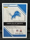 This is a rare and highly sought-after 2023 Panini Limited Amon-Ra St Brown Limited Ink Auto #/25 trading card. It features the talented Detroit Lions player in a limited ink design and is serial numbered for added authenticity. The card is perfect for avid collectors of sports trading cards, especially those who are fans of the NFL and football in general. In addition to the autograph, this card also boasts a short print and parallel/variety feature, making it an even more unique addition to any collection. With its beautiful design and high-quality manufacturing, this card is sure to impress any fan of Amon-Ra St. Brown and the Detroit Lions.