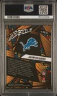 The 2023 Panini Mosaic Razzle Dazzle trading card features Jahmyr Gibbs of the Detroit Lions. This rookie card, graded a perfect 10 by Professional Sports Authenticator (PSA), is a short print insert with a Razzle Dazzle parallel variety. The card includes the unique Card Number RD 24 and belongs to the 2023 Panini Mosaic set. It is a highly sought-after collectible item for fans of football trading cards.