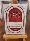This is a 2023 Panini National Treasures trading card featuring John Taylor of the San Francisco 49ers. It is an autographed card with a patch, part of the Lasting Legacies set with a print run of 99. The card is serial numbered, a short print, and an insert card. It is a rare collectible item for football fans. card is as pictured.