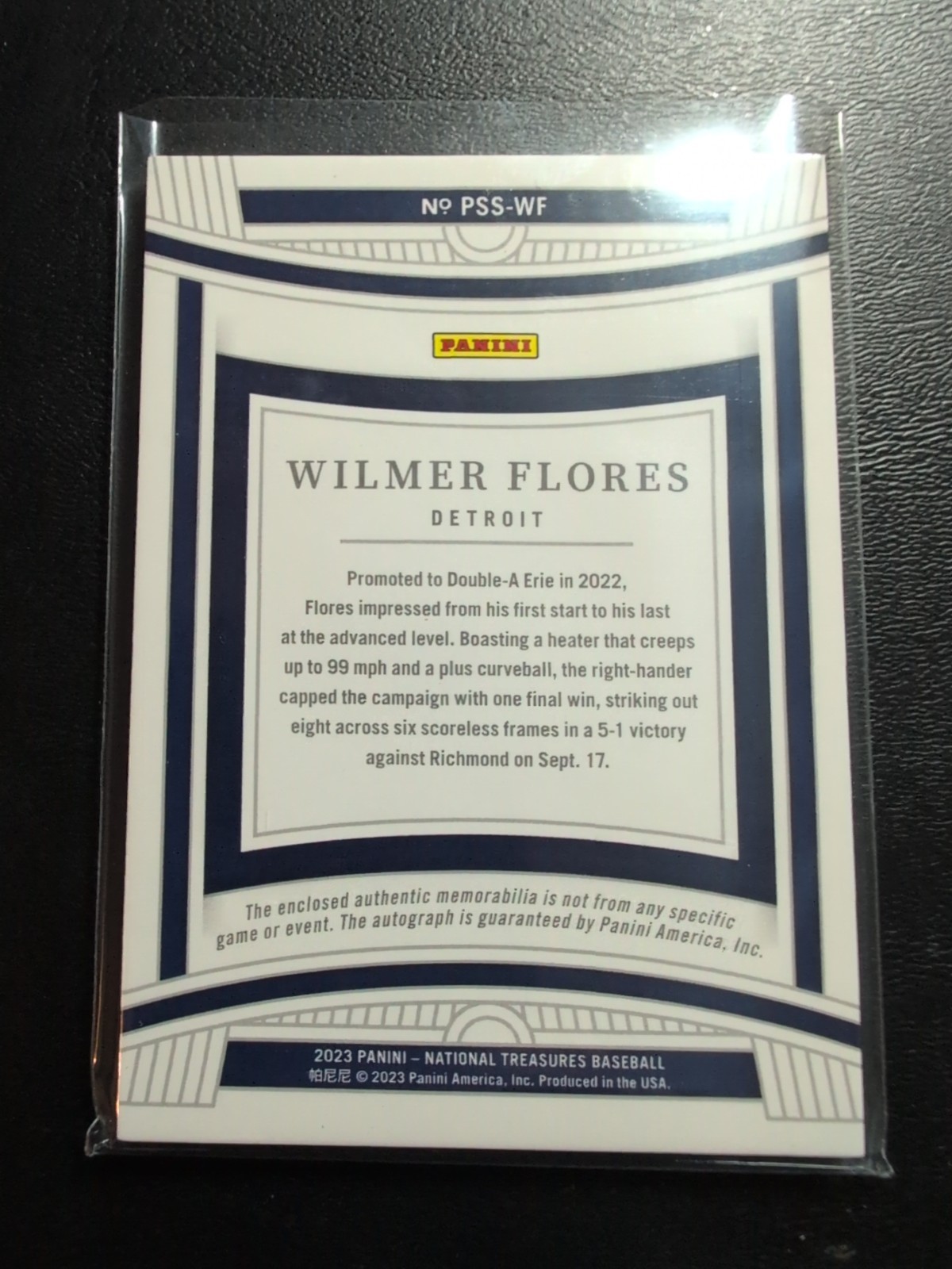 The 2023 Panini National Treasures Wilmer Flores Patch Auto trading card is a highly sought-after collectible item for fans of the Detroit Tigers and baseball enthusiasts alike. This limited edition card features a hard-signed autograph from Wilmer Flores, an up-and-coming player in Major League Baseball. With a print run of only 99, this card is sure to be a valuable addition to any trading card collection. Featuring a patch design and authenticated by Panini Authentic, this card captures the essence of sports memorabilia and showcases the talent of Wilmer Flores in the 2023 baseball season.